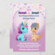Invitez tous vos invités à célébrer une double fête d'anniversaire avec cette charmante invitation de fête de licorne et de dinosaure. Ajoutez les noms et âges de vos enfants à cette équipe de licorne et de dinosaure illustrée dessinée à la main pour personnaliser votre invitation de fête et créer une fête magique et unique que vos enfants vont sûrement adorer !