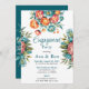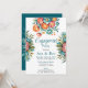 Un agencement floral vif et détaillé qui présente des pivoines dans les tons turquoise, orange et turquoise. Les pétales superposés et les centres lumineux sont complétés par des feuilles verts et des fleurs d'oranger plus petites. Le bouquet est artistiquement composé de fleurs rayonnant vers l'extérieur, évoquant l'élégance et l'harmonie.