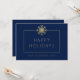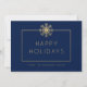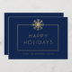 Il est facile d'envoyer des voeux de vacances à vos clients avec cette carte de vacances élégante d'entreprise. Ce design moderne de carte de séjour d'affaires présente une couleur arrière - plan bleu marine foncé avec un seul flocon de neige dans une teinte dorée. Ce modèle de carte d'invitation à plat fournit un espace réservé pour le logo de votre entreprise ainsi qu'un message personnalisé à vos clients au dos de la carte! Pour changer la couleur du arrière - plan ou ajouter une photo et pour plus d'options de personnalisation, sélectionnez l'option "Customiser".