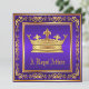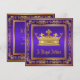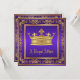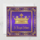 Invitation de fête violette et or avec une couronne dorée élégante sur un beau fond violet et or. Cette invitation sur le thème royal est facilement personnalisable pour votre événement en ajoutant simplement vos coordonnées dans le style de police et la couleur de votre choix. Vous pouvez déplacer les couronnes selon vos besoins.
