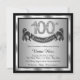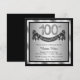 Invitation à la fête des 100 ans d'argent avec chiffres en diamants et bannière joyeux anniversaire sur fond argent et noir. Cette belle invitation à la fête des 100 ans d'argent est facilement personnalisable pour votre événement. Vous pouvez changer la couleur de fond. Ce design saisissant convient aussi bien à un homme qu'à une femme. Il s'agit d'un design imprimé sans vrais diamants, argent, paillettes, etc.