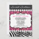 Invitation de fête d'anniversaire pour un sweet sixteen rose et noir avec un motif léopard et zèbre rose vif pailleté de strass. Ajoutez vos informations au recto et/ou au verso en choisissant simplement le bouton orange "Personnalisez-le !" pour commencer à ajouter les détails de votre événement, le style, la taille et la couleur de la police, ainsi que le libellé. Veuillez noter que tous les décorations de gâteaux, cartes et modèles d'invitation que vous trouverez sur Zazzle sont des graphiques imprimés sans véritables bijoux, rubans, reliefs, gaufrages ou pièces ajoutées.