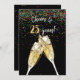 Toast au champagne sur fond noir avec des confettis qui tombent pour l'invitation à la fête des 25 ans de mariage.