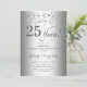 Invitation à la célébration du 25e anniversaire de noces de diamant. Design élégant avec fausse feuille d'argent pailletée. Caractères cursifs noirs et confettis. À votre santé pour 25 ans ! Peut être personnalisé pour afficher n'importe quelle année de mariage. Envoyez-moi un message si vous avez besoin d'une personnalisation supplémentaire.