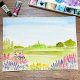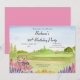 Cette aquarelle charmante présente un terrain de golf bordé de pins et une voiturette de golf rose ludique, encadrés par des astilbes roses doux et de la sauge de Russie en fleurs, créant un cadre léger et serein parfait pour célébrer un 30e anniversaire.