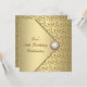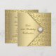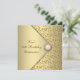 Invitation élégante d'anniversaire de 50 ans pour femme avec motif tourbillonnant or et or et bijou central perle. Cette belle invitation d'anniversaire de 50 ans est facilement personnalisable pour votre événement en ajoutant simplement vos détails dans le style de police et la formulation de votre choix.