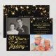 Invitez vos invités avec cette invitation pour les 50 ans de mariage en noir et or avec des étoiles dorées présentant une typographie rétro indiquant 50 ANS DE PRÉPARATION et vous permet d'inclure leur année de mariage dans le cadre du design et d'ajouter leurs photos d'ALORS et d'AUJOURD'HUI. Les détails de l'invitation à la fête sont au verso.