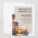 Carton d'invitation élégant à thème whisky pour l'anniversaire d'un homme. Célébrez soixante années de vie avec cette invitation classique et masculine présentant une grande bouteille de whisky et un verre en aquarelle sur le côté droit, lui donnant une touche moderne. Le haut de l'invitation indique "Il a vieilli à la perfection" dans un mélange de polices de caractères serif classiques et en détresse. Le design actuel présente une palette de couleurs blanche et beige ou marron, mais vous pouvez personnaliser le rectangle, l'arrière-plan et les couleurs de police pour l'adapter à votre thème. Parfait pour tout amateur de whisky, cette invitation capture l'essence d'un goût raffiné. Le dos est uni, gardant l'attention sur le design élégant du recto. Idéal pour une fête d'anniversaire stylée pour les 60 ans, mais suffisamment polyvalent pour tout âge. Disponible sous