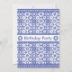 Invitations élégantes à la fête d'anniversaire - faciles à personnaliser. motif traditionnel à damier à fleurs bleu et blanc.