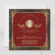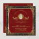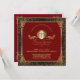 Des invitations élégants de la fête de graduation en or, en noir et rouge de la RN avec des accents d'or faux - Une élégante parties scintillant en faux or sur le noir avec des parchemins en or métallique ornent les coins. Le centre est un cadre décoratif à effet métallique doré de cercle et de rouleaux de feuilles avec un symbole médical de la caducée noire. Lectures Annonce de la graduation de en lettres dorées courbées en haut. Ci-dessous, le nom personnalisé de l'infirmière dans l'élégante écriture dorée et d'autres détails de la fête de graduation dans l'écriture dorée, y compris l'information RSVP. Contre un arrière - plan rouge solide et riche. Le dos est assorti à un arrière - plan rouge avec des rouleaux dorés dans les coins et au grand symbole de la cathédrale noire au centre. Oeuvre aussi pour une soirée infirmière sophistiquée sur le thème de Great Gatsby.