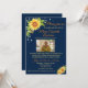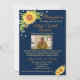 Une belle coutume élégante Célébration de la vie invitation avec des tournesols à l'aquarelle fleurie et chaîne de lumières avec du texte crème et orange sur un arrière - plan bleu. Une belle façon d'invitation vos amis et votre famille pour partager leurs histoires et souvenirs préférés de votre être aimé. Customisez en ajoutant une photographie. Ensuite personnalisez avec votre propre message et les détails du service commémoratif / funéraire.