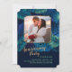 Une invitation mariage anniversaire fête avec un arrière - plan de minuit et des feuilles tropicaux en bleu royal et turquoise. La fenêtre photo du carré reflète les coins découpés de l'invitation.<a href="https://www.freepik.com/free-photos-vectors/people">Photo du peuple créée par freepik - www.freepik.com</a>).<a href="https://www.freepik.com/free-photos-vectors/background">vecteur Arrière - plan créé par pikisuperstar - www.freepik.com</a>). <br/>() La carte est facile à customiser avec votre libellé, police, couleur de police, options de forme de papier et le choix de six types de papier.<br/>() Pas exactement ce que vous cherchez? Tous nos produits peuvent être conçus sur mesure pour répondre à vos besoins sans frais supplémentaires.<br/>() Il suffit de nous contacter à askcottonlamb@gmail.com .<br/>() Coordination des produits disponibles : Il suffit de nous demander !"