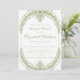 Célébrez la future mariée avec cette élégante invitation à la douche nuptiale à cadre vert olive. Inspiré par les thèmes rococo classiques, il présente des motifs floraux français délicats encadrant le nom de la mariée en écriture gracieuse et la typographie moderne pour les détails de l’événement. La palette raffinée de vert d'olive et sa disposition propre confèrent un look intemporel alliant romantisme traditionnel et charme contemporain. Parfait pour les douches nuptiales sophistiquées, cette invitation donne le ton d'une célébration élégante.