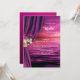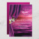 Invitation à la douche nuptiale originale avec des roses à papillons sur un rideau violet donnant sur une scène océanique imaginaire. Au verso se trouve un modèle de code QR pour faciliter la visite de votre site Web et de votre RSVP ainsi que la consultation du registre.
