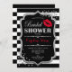 Invitation à la douche nuptiale. Design élégant noir blanc avec fausse parties scintillant argent. Comprend baiser des lèvres rouges, bandes blanches noires, confettis et police de script. Parfait pour une douche design. Message-moi si vous avez besoin d'une personnalisation plus poussée.