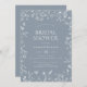 Donnez le ton pour une douche nuptiale chic et élégante avec cette invitation à la douche nuptiale Dusty Blue Flowers, avec des fleurs sauvages délicats dans des teintes douces bleu poussiéreux et périwinkle. Le design botanique d'inspiration boho apporte une touche de beauté naturelle, parfaite pour une fête de printemps ou d'été. Si vous avez besoin d'aide pour customiser votre invitation, faites-le-moi savoir : j'aimerais vous aider !