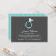 Ajoutez une touche de luxe à votre douche nuptiale avec cette invitation Blue Diamond Ring! Dotée d'un design éblouissant d'un anneau de diamant bleu et placé contre un arrière - plan élégant et moderne, cette invitation respire l'élégance et le raffinement. Un texte entièrement personnalisable permet de distinguer les détails de votre événement, ce qui en fait un lieu idéal pour une célébration glamour.