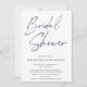 Modern Minimalist Simple Elegant Navy Blue and White Bridal Shower Invitation mettant en vedette notre typographie manuscrite chic et vos détails personnalisés. Parfait pour votre affaire huppée. Veuillez nous contacter à cedarandstring@gmail.com si vous avez besoin d'aide pour la conception ou les produits correspondants.