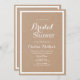 Papier brun simple et moderne et blanc chic invitation à la douche nuptiale.Cette invitation minimaliste à la douche nuptiale brune et blanche est parfaite pour toute jeune fille chic et sophistiquée. Ce design est parfait pour les soirées tendance et élégantes. Customisez ce design avec votre propre message et des informations personnalisées. Tous les dessins sont imprimés.