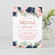 Invitation Fête des mariées bleu bleu bleu bleu rose floral