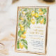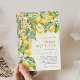Invitation à la douche nuptiale bleu citron. Cette élégante invitation à la douche nuptiale saisit l'essence de l'élégance contemporaine avec une touche moderne. Il présente un cadre latéral branché de citrons vibrants, de verdure verdoyante et de délicates fleurs de citrons, le tout contre un arrière - plan classique en ivoire avec de l'or et du bleu marine. L'arrière comprend un motif italien en carreaux bleu, vert et or. Le design est à la fois frais et accueillant, parfait pour une mariée qui aime une touche de modernité tout en célébrant les thèmes traditionnels de l'amour et de l'union sous le soleil méditerranéen.