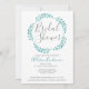 De belles vignes turquoises couleur aquarelle enveloppent le mot douche nuptiale sur cette simple mais belle invitation blanche pour une mariée de plage. Une couronne turquoise pour une occasion insulaire près de l'océan, alliant un joli design botanique turquoise à une typographie élégante pour un événement chic et minimaliste en été.