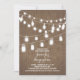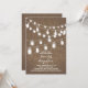 Invitation romantique à la douche nuptiale avec burlap rustique et lumières à cordes avec jarres suspendues en maçon.