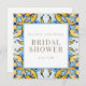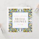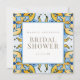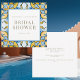 Invitation à la douche nuptiale bleu et jaune. Carré. Texte en or. Méditerranée.