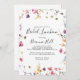 Cette invitation à la nuptiale pour un déjeuner nuptial coloré classique est parfaite pour un wedding shower rustique. Le design présente des fleurs sauvages jaunes, violettes et blanches avec du feuillage dans un arrière - plan rose et vert aquarelle.