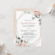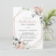 Cette invitation à la fête du thé de la douche nuptiale rose géométrique est parfaite pour un wedding shower rustique. Le design présente d'élégants roses poussiéreux aquarelle et feuillage vert, soigneusement assemblés en de beaux bouquets, décorant un cadre géométrique charmant.