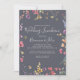 Cette invitation classique à la douche nuptiale pour mariage sauvage bleu bleu classique est parfaite pour un wedding shower rustique. Le design présente des fleurs sauvages jaunes, violettes et blanches avec du feuillage dans un arrière - plan rose et vert aquarelle.