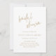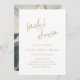 Élégante invitation à la douche nuptiale de style typographique avec un agencement simple et minimal avec une combinaison d'une police serif classique et une calligraphie manuscrite moderne. Le dos a votre photo préférée. Le thème de couleur est l'or champagne et peut être modifié dans l'outil d'édition de design.
