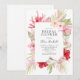Cette invitation à la douche nuptiale sur le thème de la plage de saumons boho présente un cadre magnifique de récif corallien, de feuilles de palmiers, de fleurs d'hibiscus rouges et roses et de coquillages de mer. Idéal pour une fête tropicale pour les invitations, cette invitation donnera le ton d'une fête ludique et détendue. Le design saisit l'essence d'une ambiance de plage, ce qui en fait un grand choix pour une mariée qui aime tout ce qui est bohème et balnéaire. Ne manquez pas cette invitation unique et élégante !