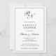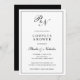 Invitation à la douche nuptiale en couple classique avec un design simple avec votre deux monogramme initial et vos noms dans une calligraphie élégante à l'intérieur d'une mince bordure. Le dos est noir et solide. Ce design classique noir et blanc est parfait pour une douche à couple formelle.