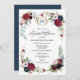 Invitation Fête des mariées d'aquarelle bleu marine, bourgogn