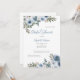 Une belle invitation à la douche nuptiale avec des fleurs florales bleues et blanches poussiéreuses faites en aquarelle.