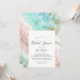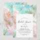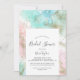 Cette abstraite invitation à la douche nuptiale en aquarelle d'été est parfaite pour un wedding shower moderne. L'élégant design unique est composé de bleu clair, vert menthe, rose vif et violet pastel avec des éclats de parties scintillant dorée, créant une atmosphère de plage fantasque.