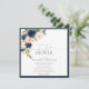 Une élégante invitation à la douche nuptiale carré moderne, avec un bouquet de fleurs bleu marine et rose vif, bordée de bleu marine. Personnalisez vos détails de douche nuptiale en noir doux, accentué par une belle calligraphie moderne lettrée à la main. L'arrière de la carte présente une aquarelle bleu marine. Une partie d'une suite coordonnée. Voir la collection complète ici : https://www.zazzle.com/collections/navy_blue_blush_floral_watercolor_bridal_shower-119055669272624939 Contacter le concepteur pour des produits supplémentaires. Copyright Invitations élégants, tous droits réservés.