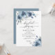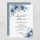 Invitation à la douche nuptiale florale peinte à la main avec fleurs bleues poussiéreuses et verdure avec script de calligraphie moderne et arrière - plan bleu ardoise. Vous pouvez personnaliser le libellé, le style de police, la couleur et la taille devant et derrière l'invitation. Vous êtes invités à me contacter pour les articles correspondants.