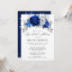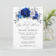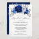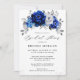 Elégant bleu royal blanc argent thème Douche nuptiale Invitation avec l'élégant bouquet de bleu royal, marine, argent, couleur blanche pure des bourgeons de fleurs roses et sauge vert eucalyptus feuilles. Veuillez me contacter pour toute aide sur la personnalisation ou si vous avez besoin d'un autre produit avec ce design.