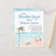 Budget Beach Ocean Surf Adventure Bridal Shower Invitations. Watercolor plage océan scène avec "Let the Adventure Begin", conception de douche nuptiale. Parfait pour la mariée qui aime la plage, l'océan et l'aventure et ne peut pas attendre de prendre sa plus grande aventure, se marier! Le design est d'une aquarelle bleue avec une jolie plage de sable, un surf d'océan, des flamants roses, un palmier et des tongs.