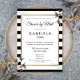 Avec un arrière - plan à rayures noir et blanc classique, cette élégante douche nuptiale par mail invitation longue distance dispose d'une élégante bordure en feuille d'or encadrant vos détails de douche nuptiale ensemble dans la typographie chic. Conçu par Thisisnotme©