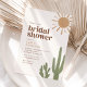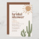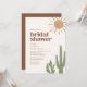 Invitations amis et famille pour célébrer la mariée à être avec cette invitation à la douche nuptiale boho, avec cactus et aquarelle soleil dans des couleurs chaudes.