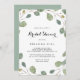 Cette invitation à la douche nuptiale de calligraphie de feuillage d'eucalyptus est parfaite pour un wedding shower rustique. Le design se compose de branches et de feuilles d'eucalyptus verts dessinés à la main.
