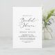 Cette délicate invitation à la douche nuptiale calligraphie est parfaite pour un wedding shower moderne. Le design minimaliste romantique présente une belle et élégante typographie noire sur un arrière - plan blanc au look épuré et sobre.