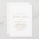 Cette délicate invitation à la douche nuptiale en calligraphie or est parfaite pour un wedding shower moderne. Le design minimaliste romantique présente une belle et élégante typographie de champagne jaune doré sur un arrière - plan blanc au look épuré et simple.