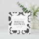 Invitation à la douche nuptiale Damas noir et blanc. Carré. Texte noir.
