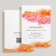 Customisez cette Invitation à la douche nuptiale colorée moderne avec une image originale d'aquarelle de couleur orange et rose se mélangeant sur un arrière - plan blanc. Fraîche et amusante, design fantaisiste. Une touche moderne est ajoutée avec un code QR personnalisable sur le dos, offrant à vos invités un accès facile à votre site Web mariage ou aux détails de l'événement. Choisissez entre des cartes magnifiquement imprimées ou un téléchargement numérique instantané pour un partage sans effort.