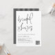 Invités Invitations à votre événement avec cette invitation minimaliste à la douche nuptiale. Il dispose d'un script minimaliste noir écrit à la main avec une typographie simple et un motif à rayures. Personnalisez en ajoutant les noms, la date, l'heure, le lieu et d'autres détails. Cette simple invitation de mariée script est disponible dans d'autres cartons.