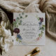 Cette invitation à la douche nuptiale pour mariage d'or bordeaux est parfaite pour un wedding shower moderne. L'élégant design boho comprend des fleurs couleur marine, rose vif et des fleurs à l'ombre du vin avec des détails artistiques au crayon.